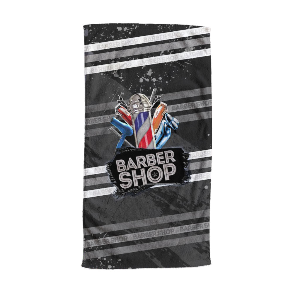 Barber Shop Logo Design: The towel features a distinctive black and white design with the iconic Barber Shop logo. The modern and professional aesthetic of the logo adds a touch of sophistication and branding to your grooming space, reinforcing the professional and stylish atmosphere of your barbershop or salon.