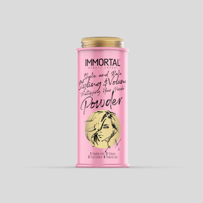 Get the perfect lift and matte finish with Immortal Styling and Volume Mattifying Hair Powder in Pink. This 30gr container is designed to create fuller, thicker hair with ease, providing a lightweight, non-greasy texture that adds volume and absorbs excess oil for a natural, matte look. Whether you want to boost your roots or create effortless, tousled styles, this powder is your go-to styling essential.